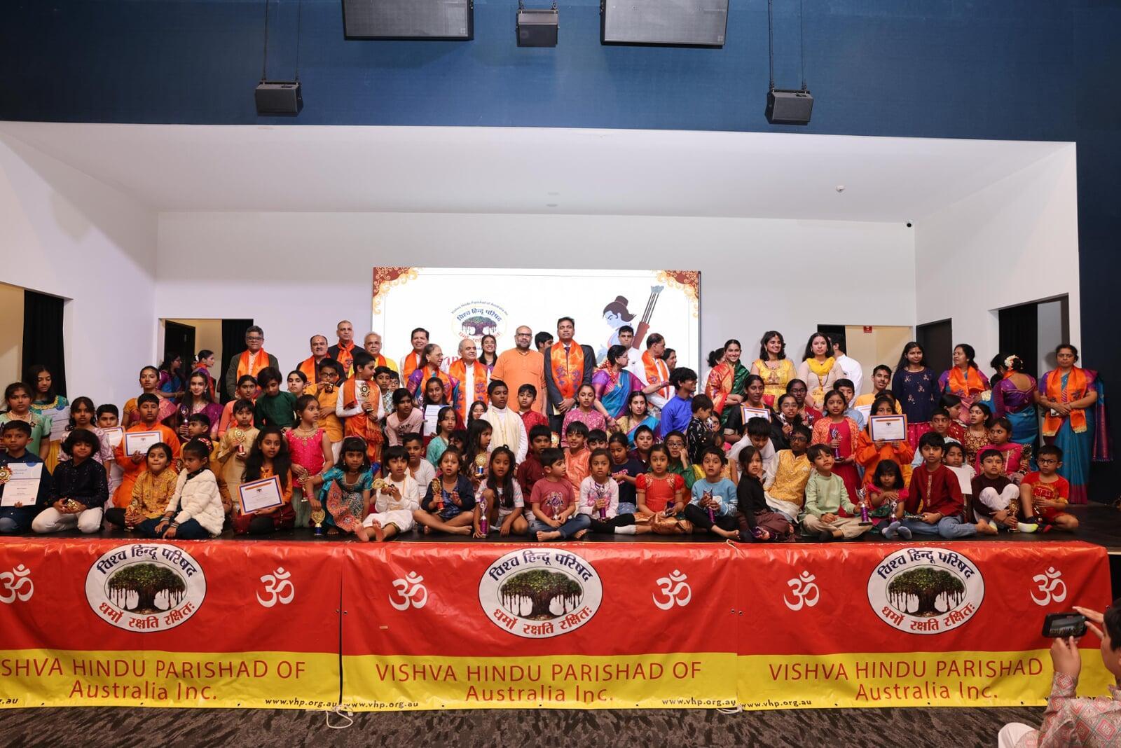 The event also featured a proud moment of recognition: the New South Wales Department of Education, Government of Australia honoured outstanding achievers from community language schools. Seven students of the VHP Sanskrit School received prestigious awards: